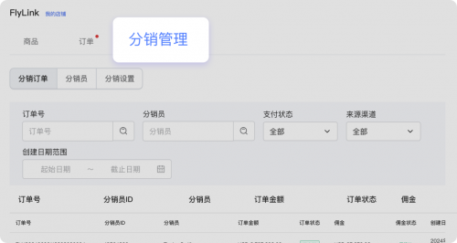 在傳統的跨境電商模式中,商家常常面臨觸達客戶范圍有限、營銷成本高等難題,尤其在跨境旺季,如何快速有效地擴大銷售網絡成為關鍵挑戰。FlyLink分銷管理功能應運而生,通過簡單的一鍵邀請,商家即可輕松搭建一個全球分銷網絡,商家可以邀請代理商、分銷商、海外網紅等多元化的角色來幫助自己在旺季大賣。